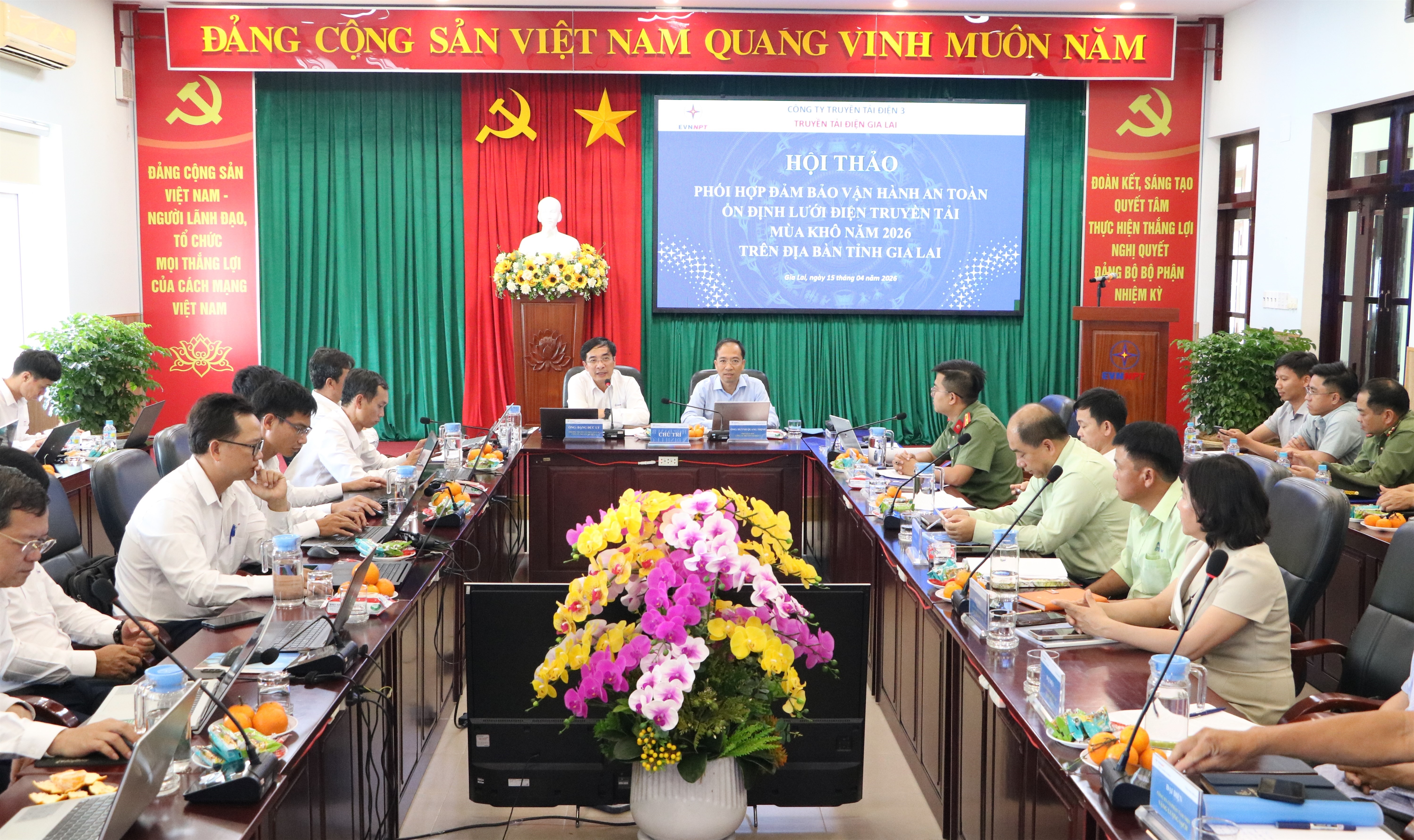 Triển khai thực hiện chỉ đạo của Tổng Công ty Truyền tải điện Quốc gia và Đảng ủy Công ty Truyền tải điện 3 về bảo đảm cung ứng điện mùa khô năm 2026, ngày 15/4/2026, Truyền tải điện Gia Lai đã chủ động tổ chức hội thảo phối hợp quản lý vận hành lưới điện với các đơn vị liên quan, qua đó cụ thể hóa yêu cầu vận hành hệ thống truyền tải điện an toàn, tin cậy, liên tục, không để bị động trong mọi tình huống, tuân thủ chủ đề VHDN quý II của PTC3: “Kỷ luật Thép, Quyết tâm bảo đảm cung ứng điện mùa khô năm 2026”.