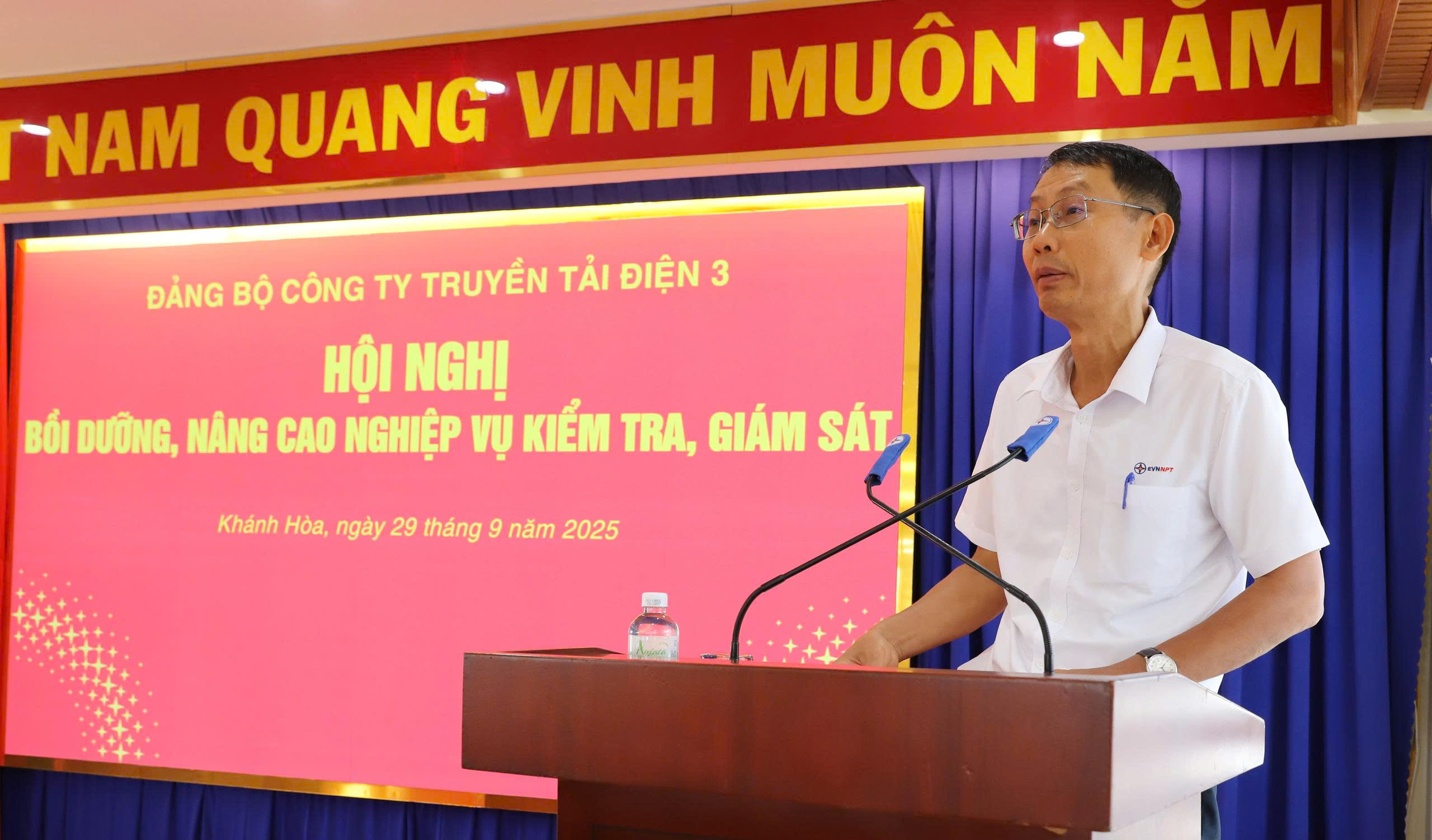 Ngày 29/09/2025, tại Nha Trang, Đảng ủy Công ty Truyền tải điện 3 (PTC3) đã tổ chức Hội nghị bồi dưỡng, nâng cao nghiệp vụ công tác kiểm tra, giám sát (KTGS) cho hơn 50 cán bộ Đảng viên, bao gồm các đồng chí trong Ban chấp hành Đảng bộ PTC3, Ủy ban kiểm tra Đảng ủy PTC3, cấp ủy trực thuộc và các đồng chí đảng viên tham mưu, giúp việc công tác KTGS tại các tổ chức đảng trực thuộc.