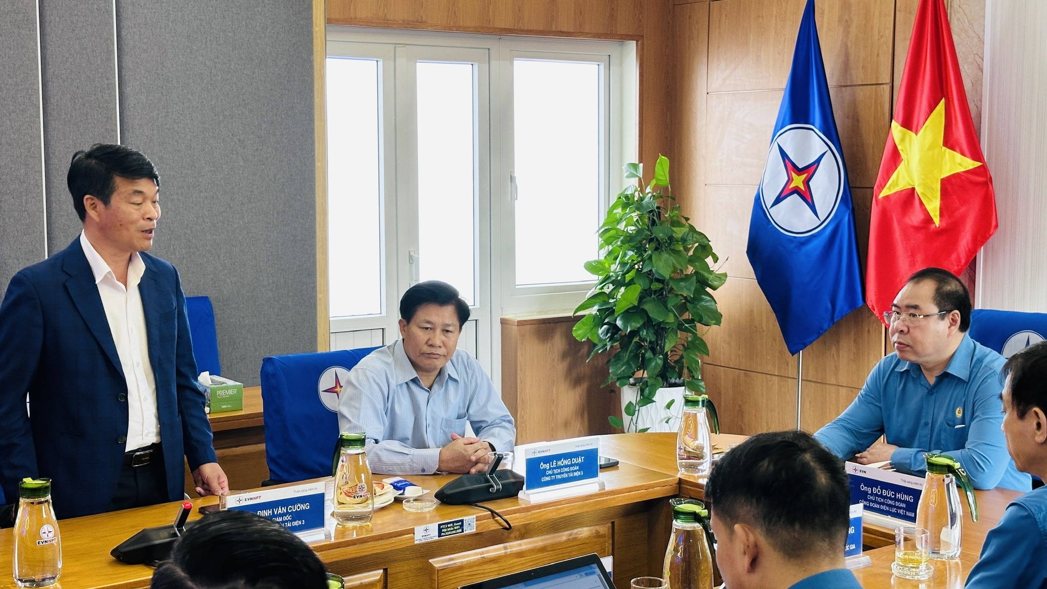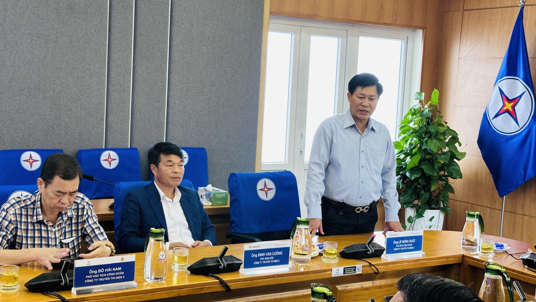Đồng chí Lê Hồng Duật - Chủ tịch Công đoàn PTC3 cảm ơn sự quan tâm, động viên kịp thời của Công đoàn ĐLVN và Công đoàn EVNNPT