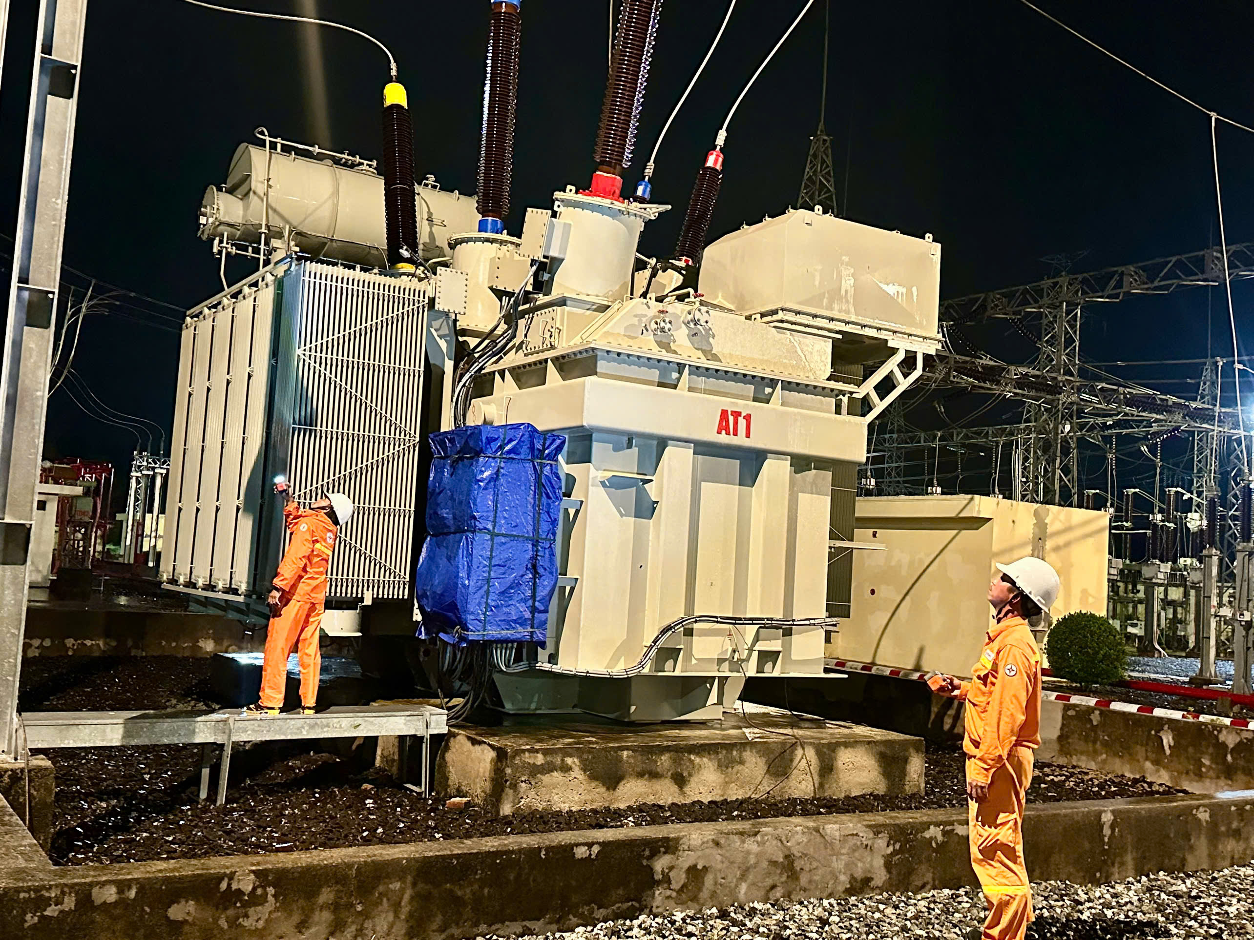Lực lượng ứng trực tại Trạm biến áp 220kV Tuy Hoa, Đăk Lăk kiểm tra vận hành thiết bị