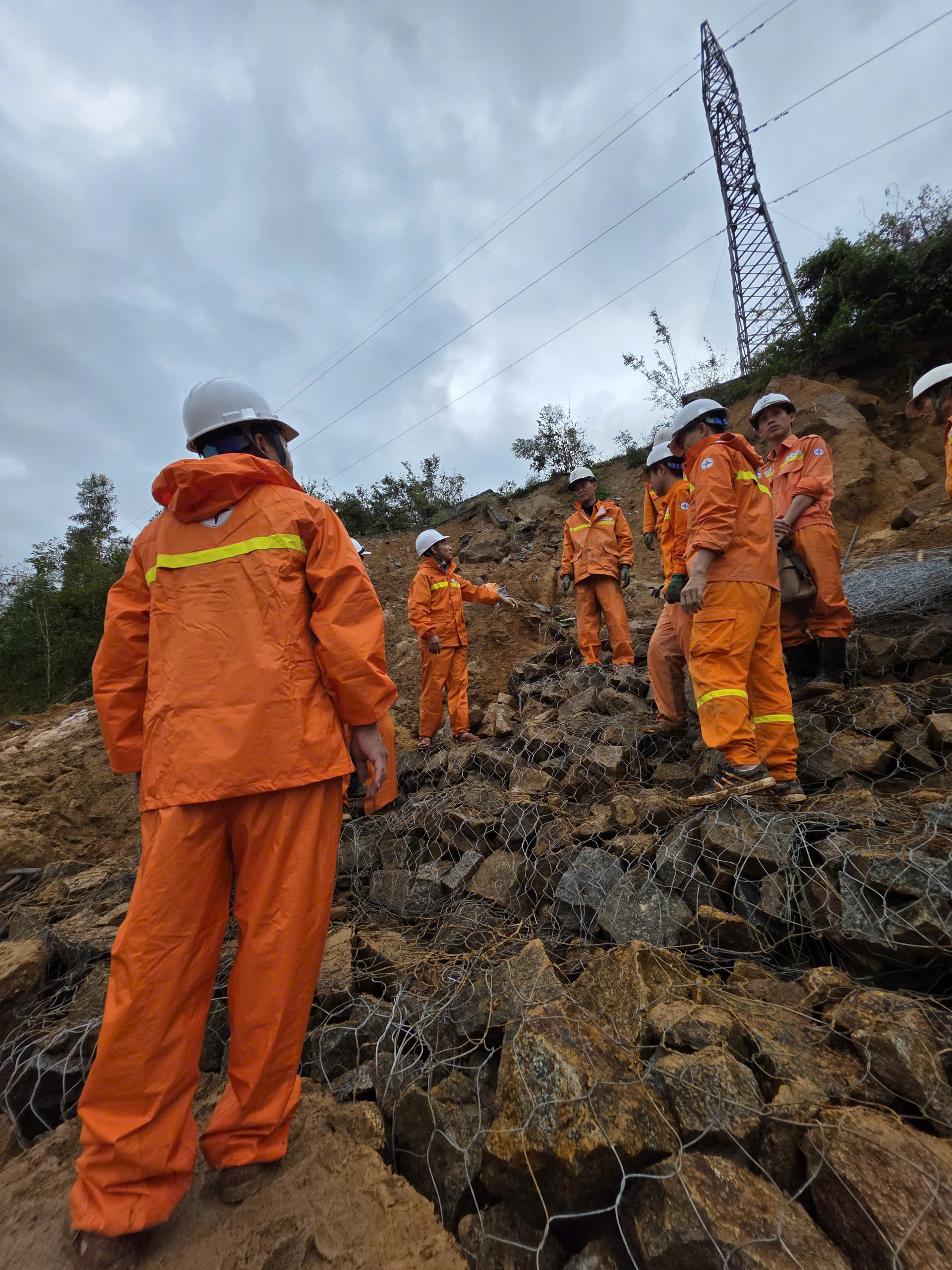 Tại hiện trường vị trí 14 đường dây 220kV Quy Nhơn – Tuy Hòa, Lãnh đạo PTC3 ghi nhận sự chủ động, quyết liệt và tinh thần “4 tại chỗ” của Đội Truyền tải điện Gia Lai đã kịp thời huy động nhân lực, vật tư và phương tiện, chủ động kiểm tra hiện trường, triển khai biện pháp gia cố khẩn cấp, lắp đặt camera giám sát để theo dõi diễn biến sạt trượt và yêu cầu: “Đội tiếp tục tăng cường giám sát nghiêm ngặt vị trí 14, sẵn sàng lắp dựng cột Kema tạm để đảm bảo vận hành khi cần thiết. Khẩn trương khảo sát, đề xuất phương án kỹ thuật tối ưu nhằm xử lý lâu dài. Song song với đó, tiếp tục kiểm tra các vị trí móng nằm trong khu vực ảnh hưởng bởi mưa lũ, đặc biệt tại những vị trí có nguy cơ trượt mái, nền đất yếu hoặc gần sông suối, phân loại mức độ hư hỏng để xác định thứ tự ưu tiên xử lý. Đồng thời nhấn mạnh: tuyệt đối không đưa công nhân vào khu vực chưa được đánh giá an toàn địa chất”.