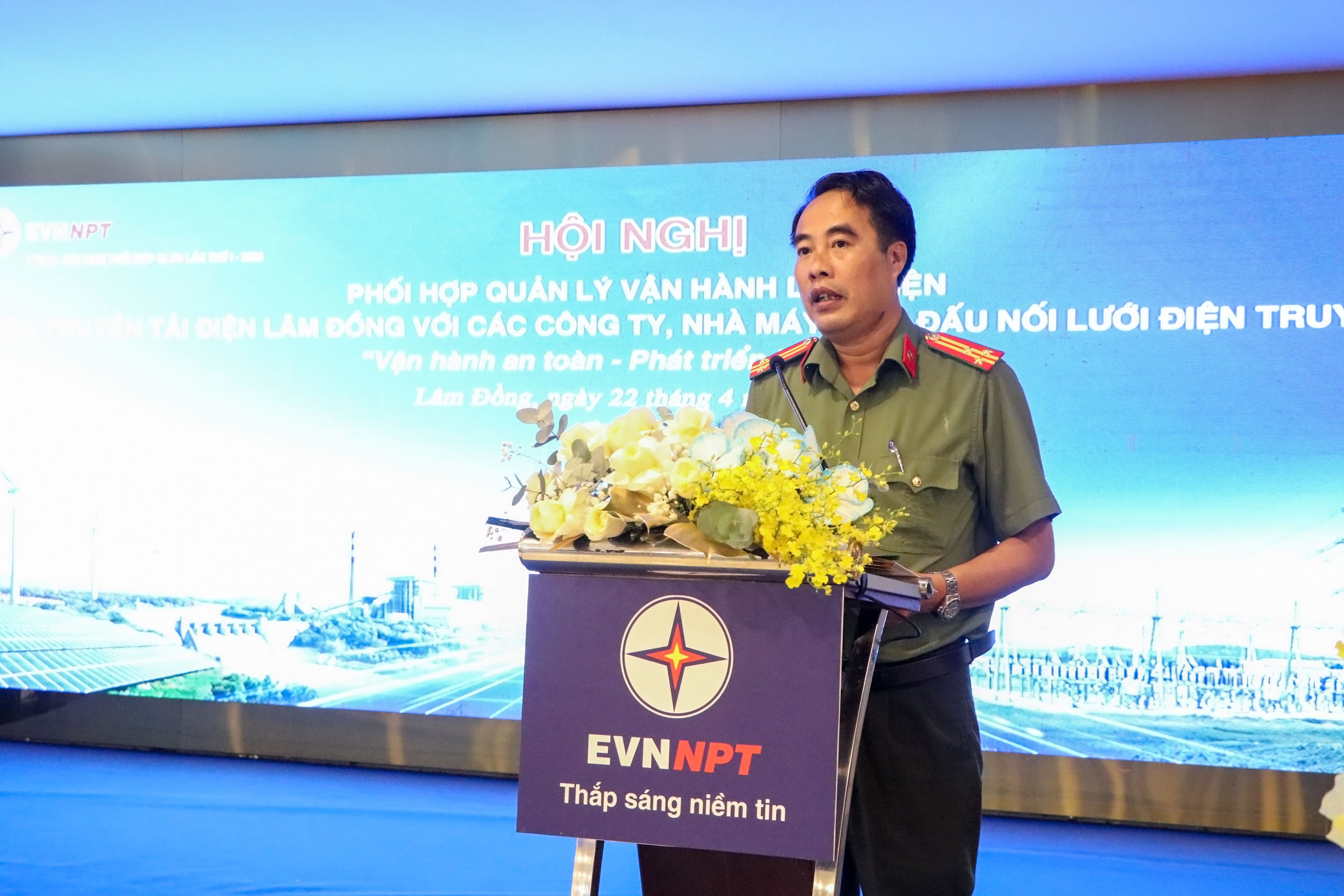 Phát biểu tại hội nghị, Thượng tá Hoàng Anh Tuấn, Phòng An ninh Kinh tế, Công an tỉnh Lâm Đồng nhấn mạnh vai trò đặc biệt quan trọng của hệ thống lưới điện truyền tải trong đảm bảo an ninh năng lượng quốc gia; yêu cầu các công trình đường dây, trạm biến áp, nhất là công trình trọng điểm, phải được quản lý, bảo vệ nghiêm ngặt. Đồng thời, đề nghị Truyền tải điện Lâm Đồng, các công ty và nhà máy điện đấu nối tăng cường phối hợp trong công tác đảm bảo an ninh, an toàn công trình; chủ động trao đổi thông tin, phối hợp với chính quyền địa phương và nhân dân trong tuyên truyền bảo vệ an toàn lưới điện cao áp.